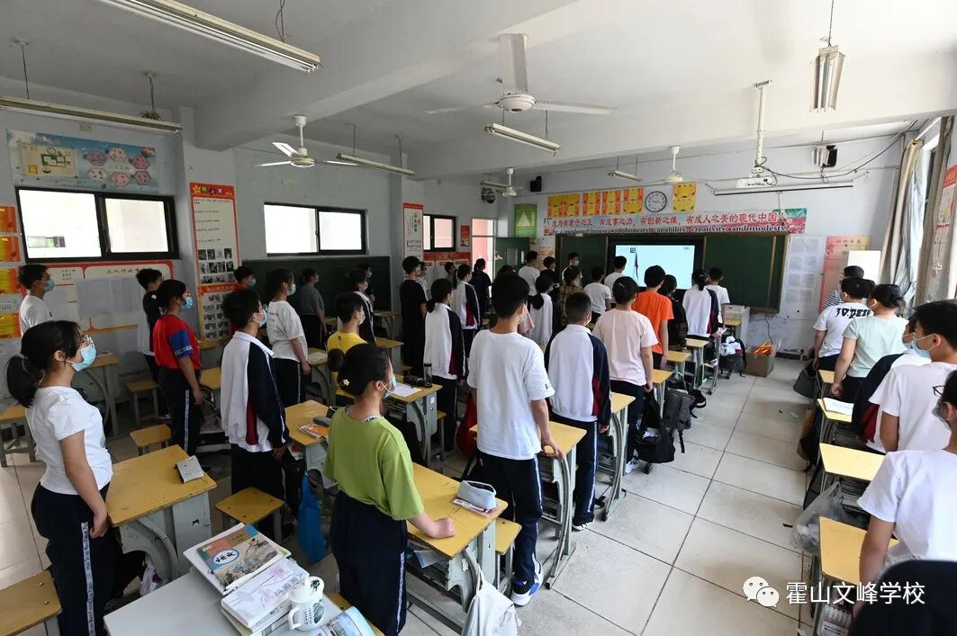 师生齐唱霍山文峰学校校歌《五彩的梦》,自豪之情萦于心间。  青年